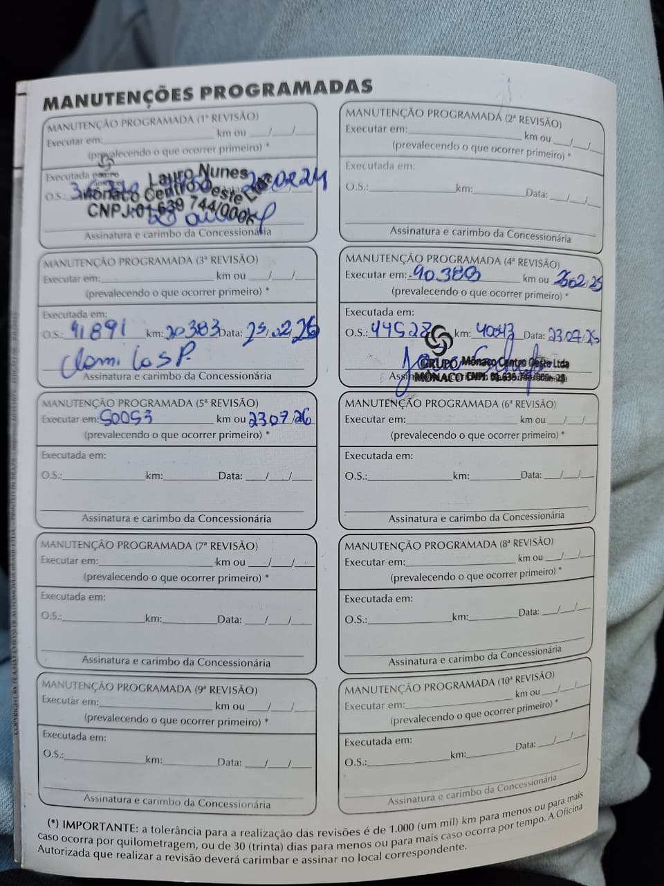 Manual ProprietárioRevisões em Concessionária